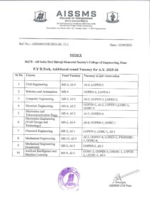 F Y B.Tech Additional Round Notice