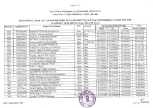 FY B Tech Provisional Against Cap Merit List 2025-26 (MHT-CET)