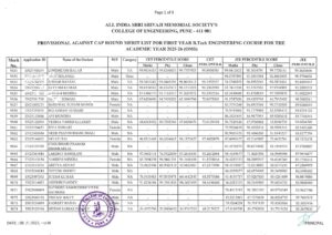 FY B Tech Provisional Against Cap Merit List 2025-26 (OMS)