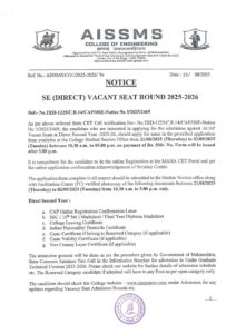 SE (Direct) Vacant Seat Round Notice 2025-26.